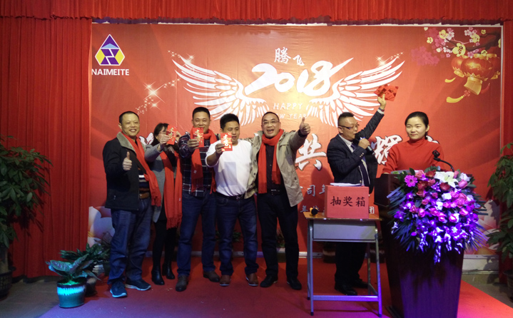 耐美特集團(tuán)公司全體員工及嘉賓們歡聚一堂,邊享用著美酒佳肴邊觀賞著舞蹈及美妙的歌聲音樂。現(xiàn)場(chǎng)還進(jìn)行了抽獎(jiǎng),氣氛相當(dāng)熱烈,群情激動(dòng),整場(chǎng)年會(huì)充滿歡聲笑語,其樂融融。